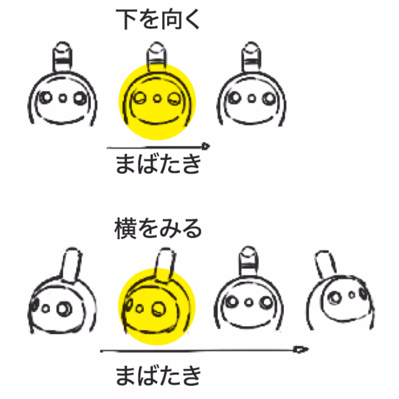 LOVOTがかおの向きを変えたり、周囲を見回したりするときには、視線の動きに合わせて、まばたきをします。