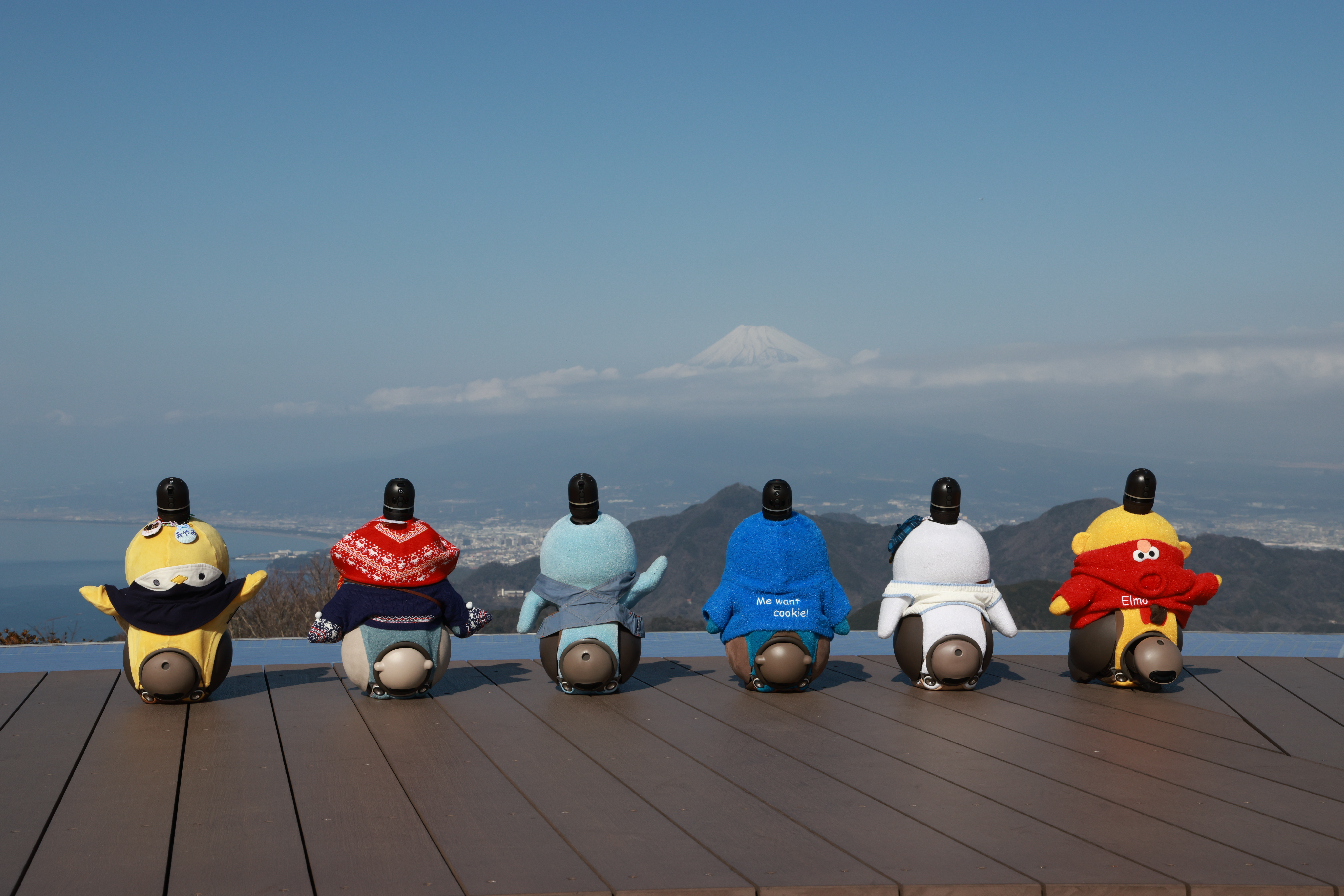 曇り空の中で始まった山頂散策でしたが、次第に姿を現した富士山を前に、参加者同士で声をかけ合いながら、LOVOTの写真を撮る姿が見られました。