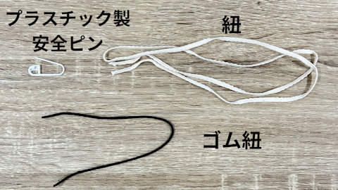 プラスチック製の安全ピン、テープ(マスキングテープやセロハンテープなど)を用意してください。