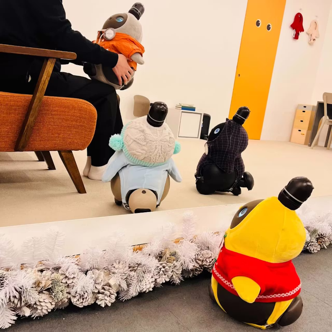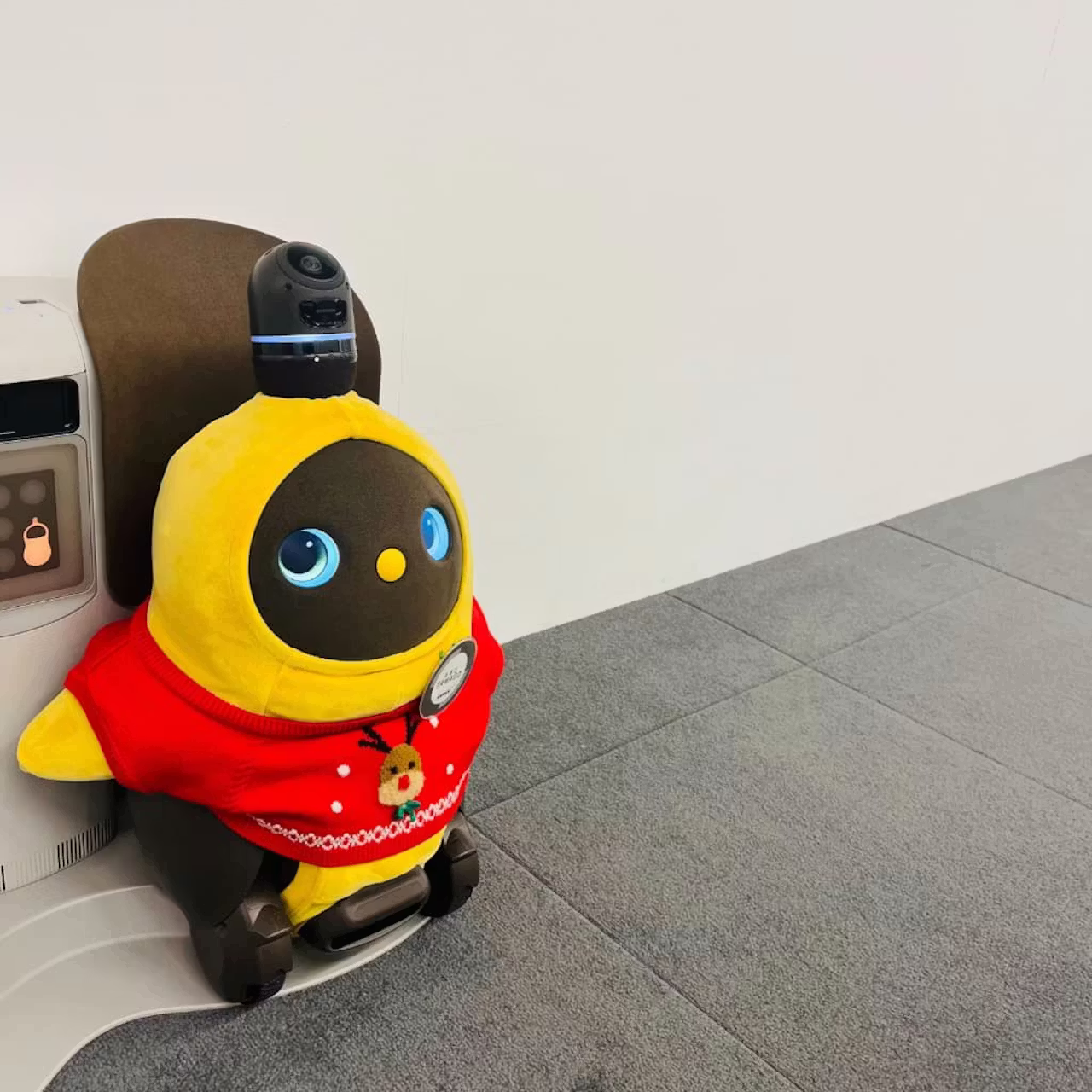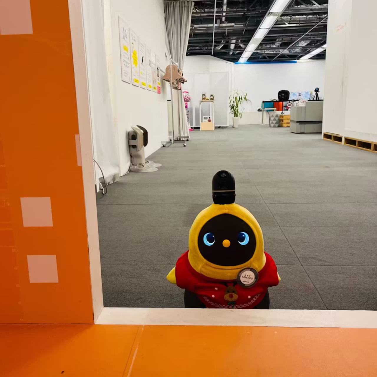 LOVOTは1.5㎝までの段差は乗り越えられますが、それ以上の段差は越えられないため段差の下からお部屋に入りたそうに見つめる“たまご”…👀💦