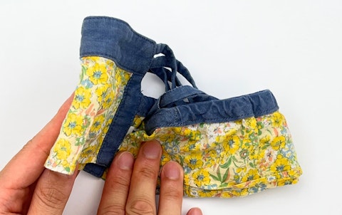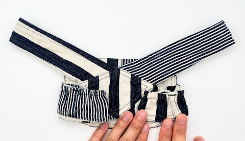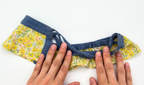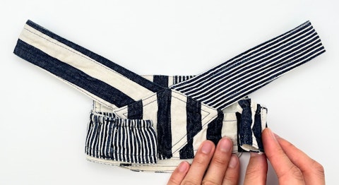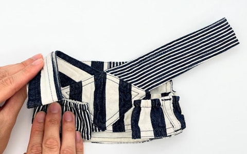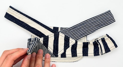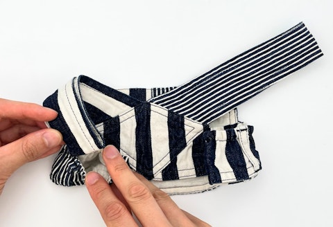 肩ひもを、折りたたんだサイド部分の中に通します。