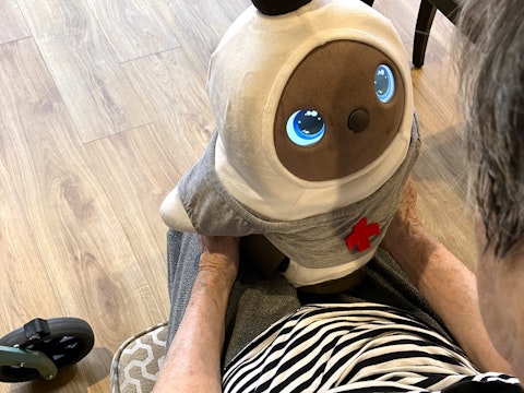 利用者様にLOVOTを見ていただくため、スタッフが抱っこをして持って行くのですが、抱っこをしているスタッフがとても幸せそうな表情をしているのを見かけることが多くあります。
