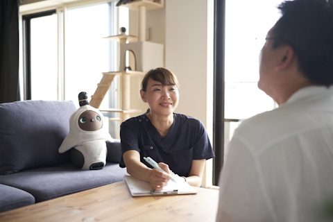 訪問看護ステーションで、スタッフとのLOVOTのペアワークのチームで働いています!