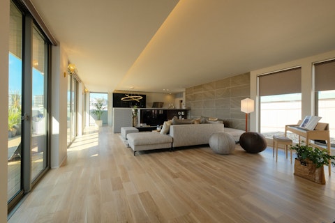 壁無しの広々リビングは積水ハウス独自の構造システムが誇る空間。
