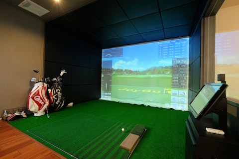 自由な発想が生きる、45帖の大空間リビングと優雅なゴルフシミュレーターのある展示場です。