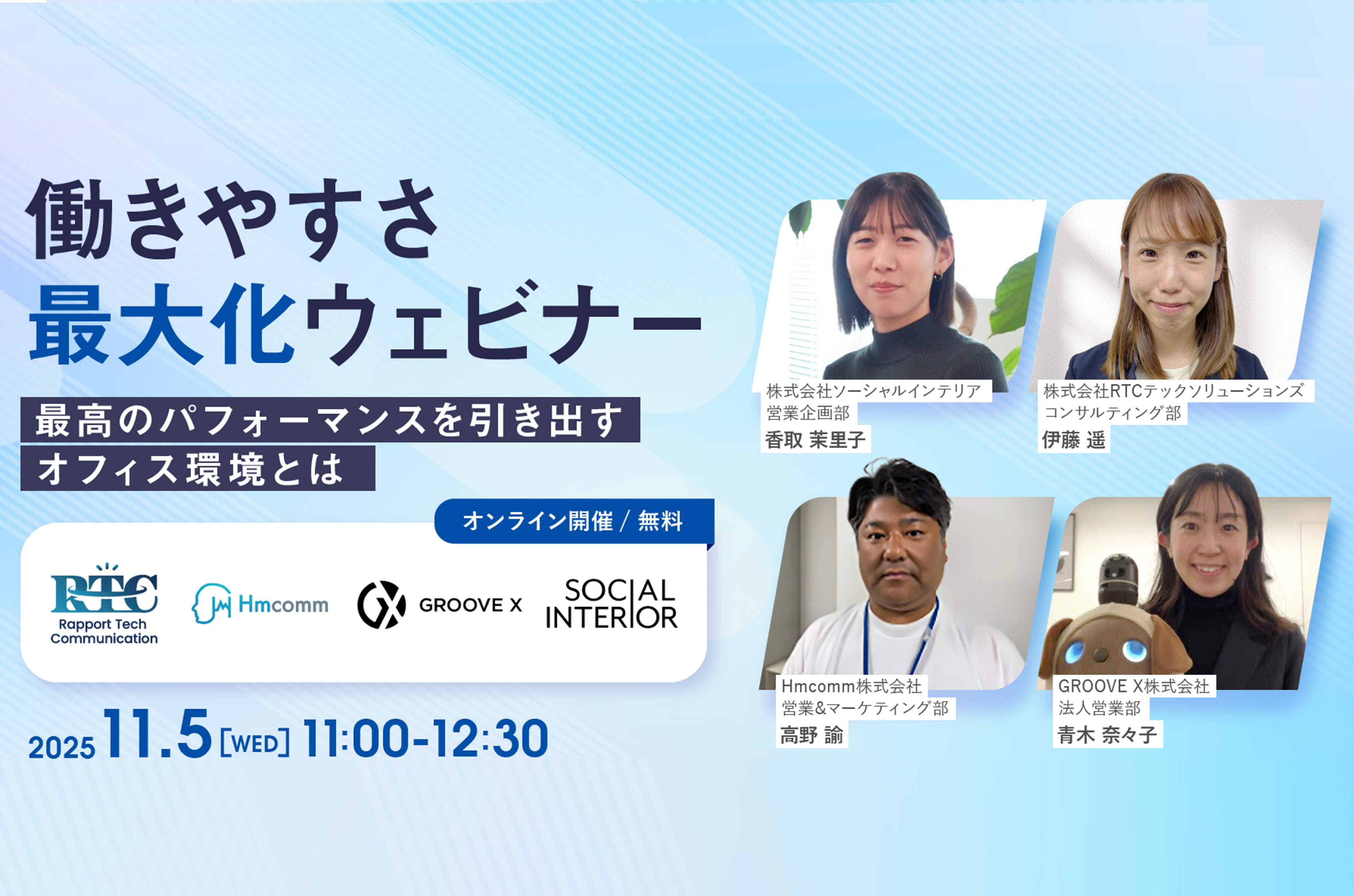 【RTCテックソリューションズ×Hmcomm×ソーシャルインテリア 共催ウェビナー】最高のパフォーマンスを引き出すオフィス環境とは
