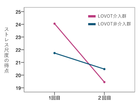 LOVOT介入群では、1回目から2回目にかけて保護者のストレスレベルが大きく低下していたことが確認できました。