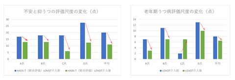 また、老年期うつ病評価尺度の点数は5名中4名が減少。平均で減少していました。