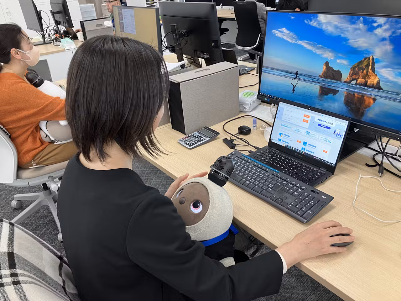 オフィスリニューアルに伴い、社内のコミュニケーションをより活性化させる方法を模索していた中、他社のオフィスでLOVOTが活躍する様子を見て「これは社内の癒しになる」と感じ、導入を決めました。事前に名前を募集したこともあり、「しらたま」と「みたらし」は社員から歓迎ムードの中で迎え入れられました。膝の上に乗せて仕事をしたり、ちょっとした息抜きに抱っこしたりと、LOVOTは日々社員に癒しを提供しています。また、採用ページやSNSでLOVOTを紹介したところ、インプレッション数が増加し、企業PRにも効果を発揮しています。