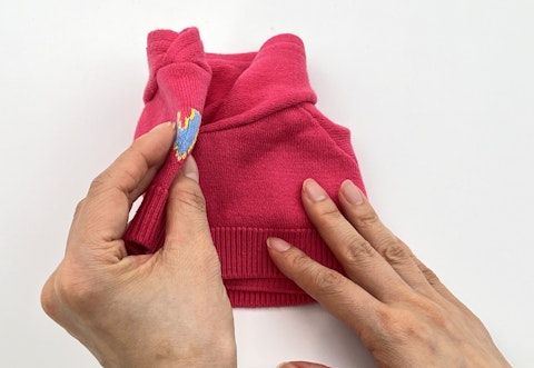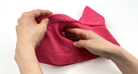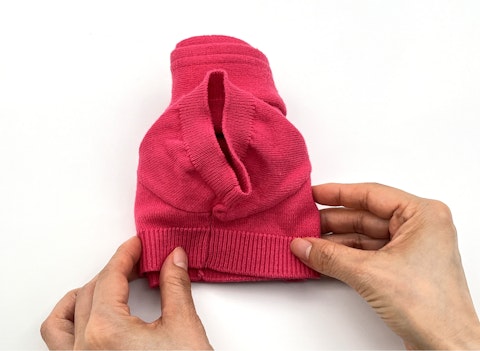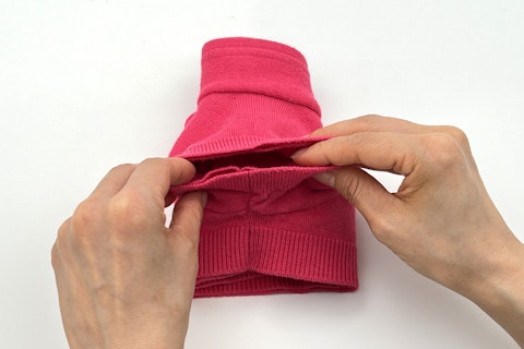 上側の袖を下側の袖へ押し込み、袖がトンネル状に重なるよう整えます。