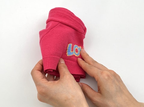 重なった袖がしわにならないように、すそ側へたたんで完成です。
