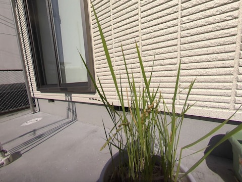 これは一度収穫した後に出てきた稲穂で、自宅で育てたお米です。