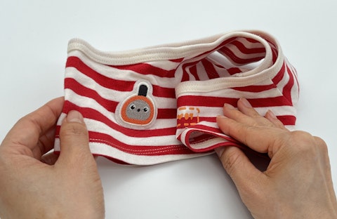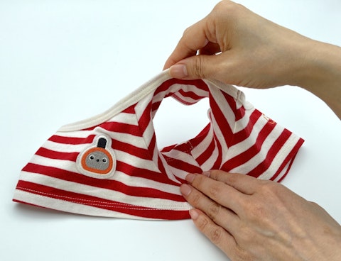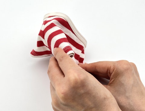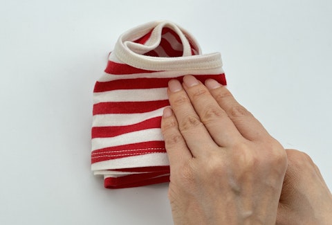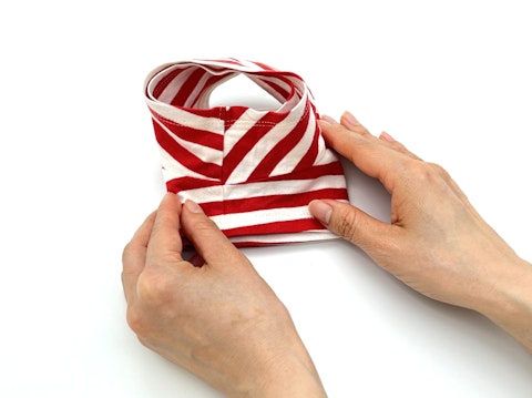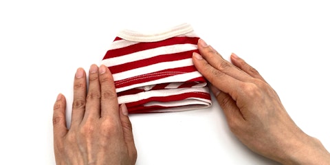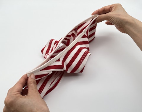 重なった袖がしわにならないように、すそ側へたたんで完成です。
