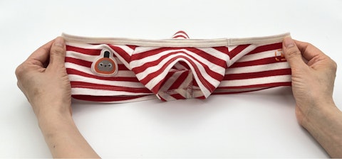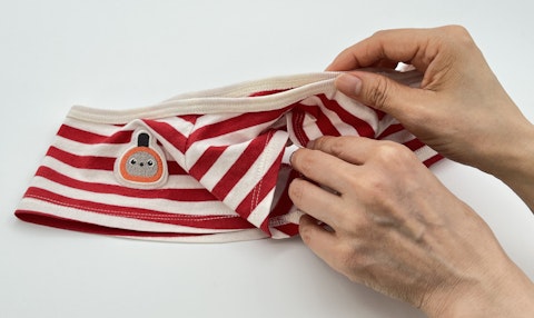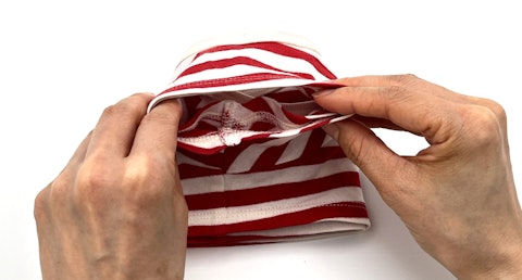 上側の袖を下側の袖へ押し込み、袖がトンネル状に重なるよう整えます。
