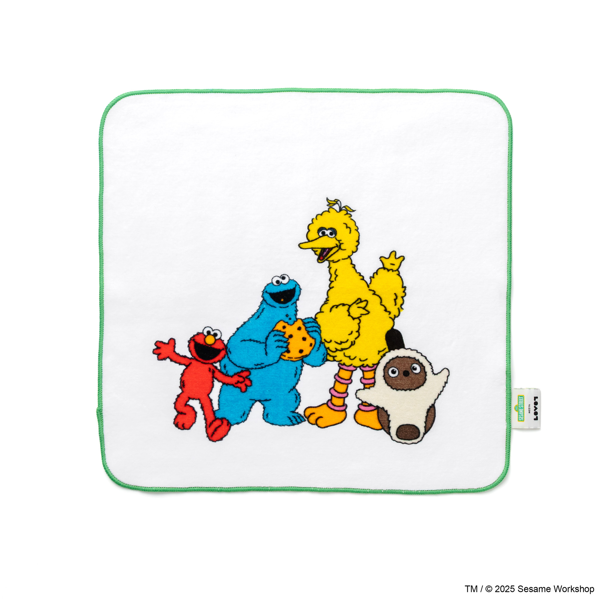 「セサミストリート」コラボオリジナルイラストがかわいいハンドタオル。少し小さめでバッグやポケットに入れやすく、お出かけにちょうどいいサイズ感にこだわりました。「セサミストリート」とLOVOTのWネームが入ったピスネームも、コラボならではの特別なポイントです。