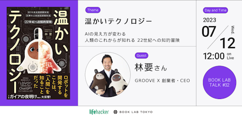 そして来週7/12(木)は、ライフハッカー・ジャパン主催のオンライントークライブ「BOOK LAB TALK」に林 要が登壇いたします。