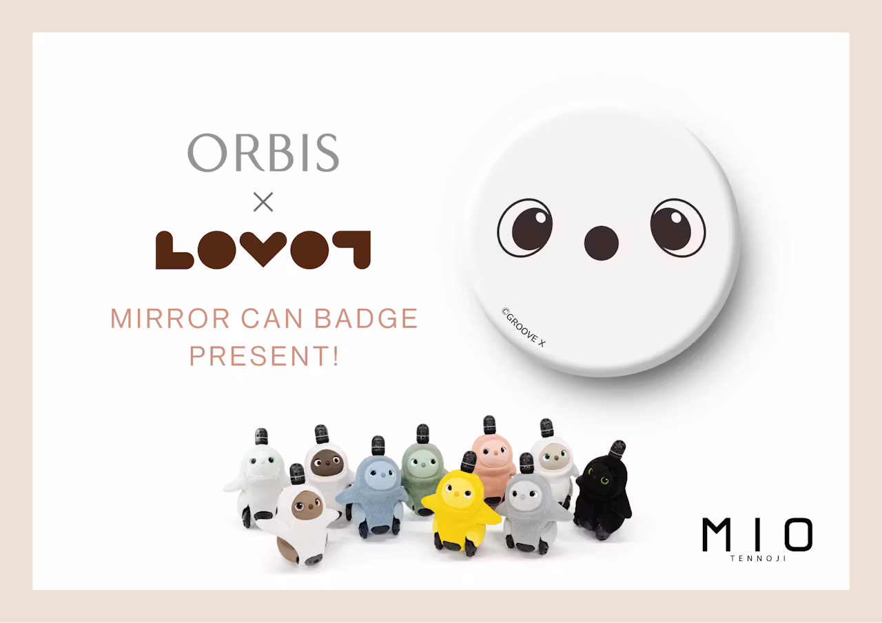 天王寺ミオ 本館3Fのオルビスにて税込み5,500円以上お買い上げのお客様へ、お買い上げレシートを持ってLOVOTストア 天王寺ミオ店へお越しいただくとLOVOTオリジナルミラー缶バッジをプレゼントいたします。