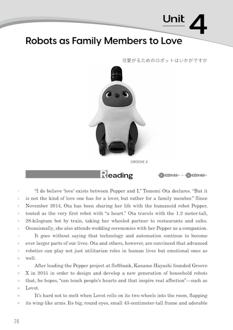 ⽇本国内の⼤学・短期⼤学の英語の授業で使われるリーディング⽤の教科書にて、The Japan Times にて紹介された『LOVOT』の記事が掲載されています。