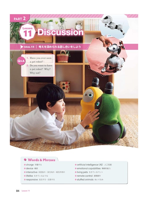 ⾼校⽣が使⽤する英語教科書の Disccusion コーナーの扉絵ページにて『LOVOT』が掲載されています