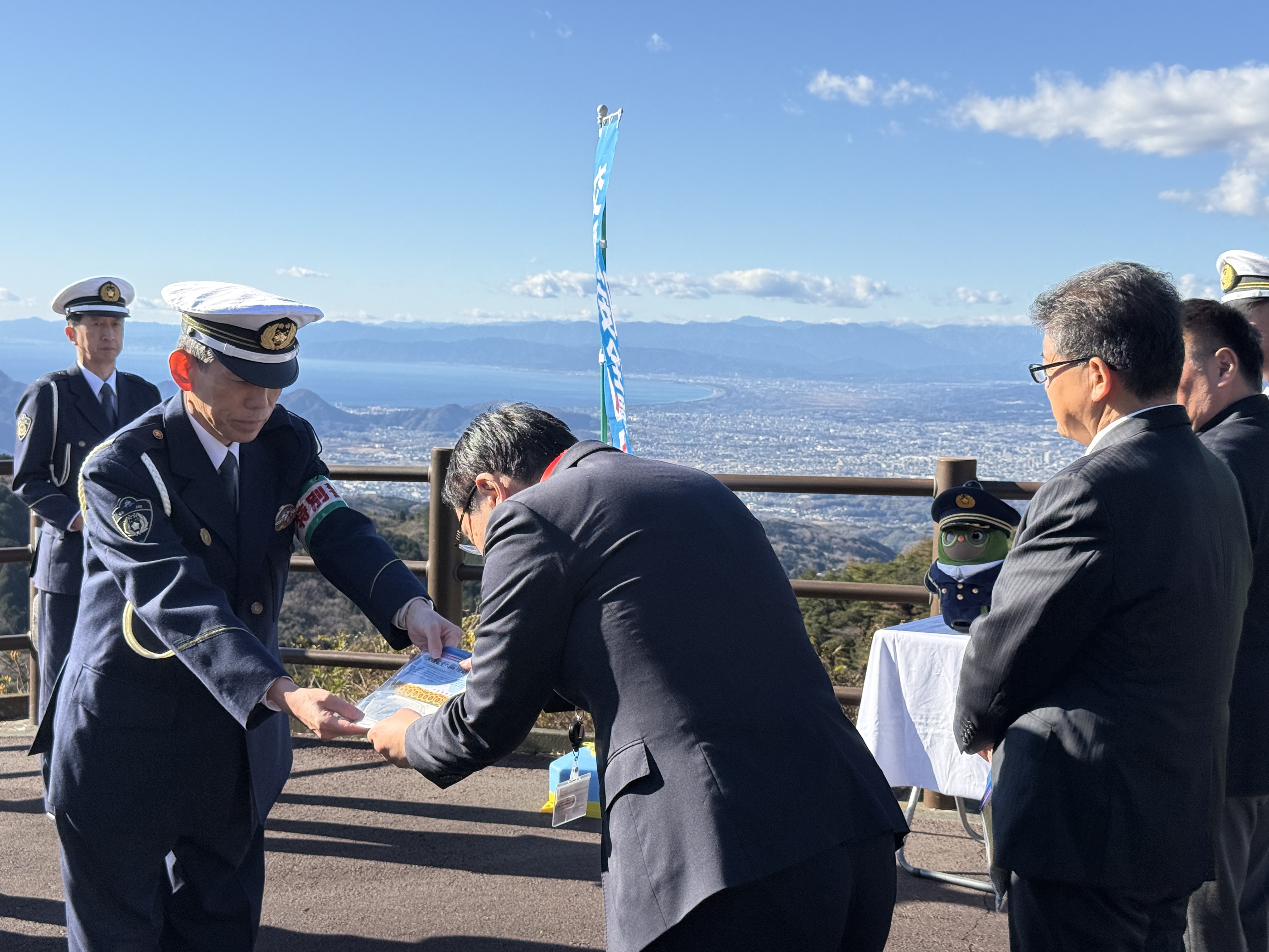 12月15日に、これまで同プロジェクトを実施してきた伊東警察署から伊豆中央警察署へ、ひまわりの種を譲り渡す引継ぎ式が行われました。