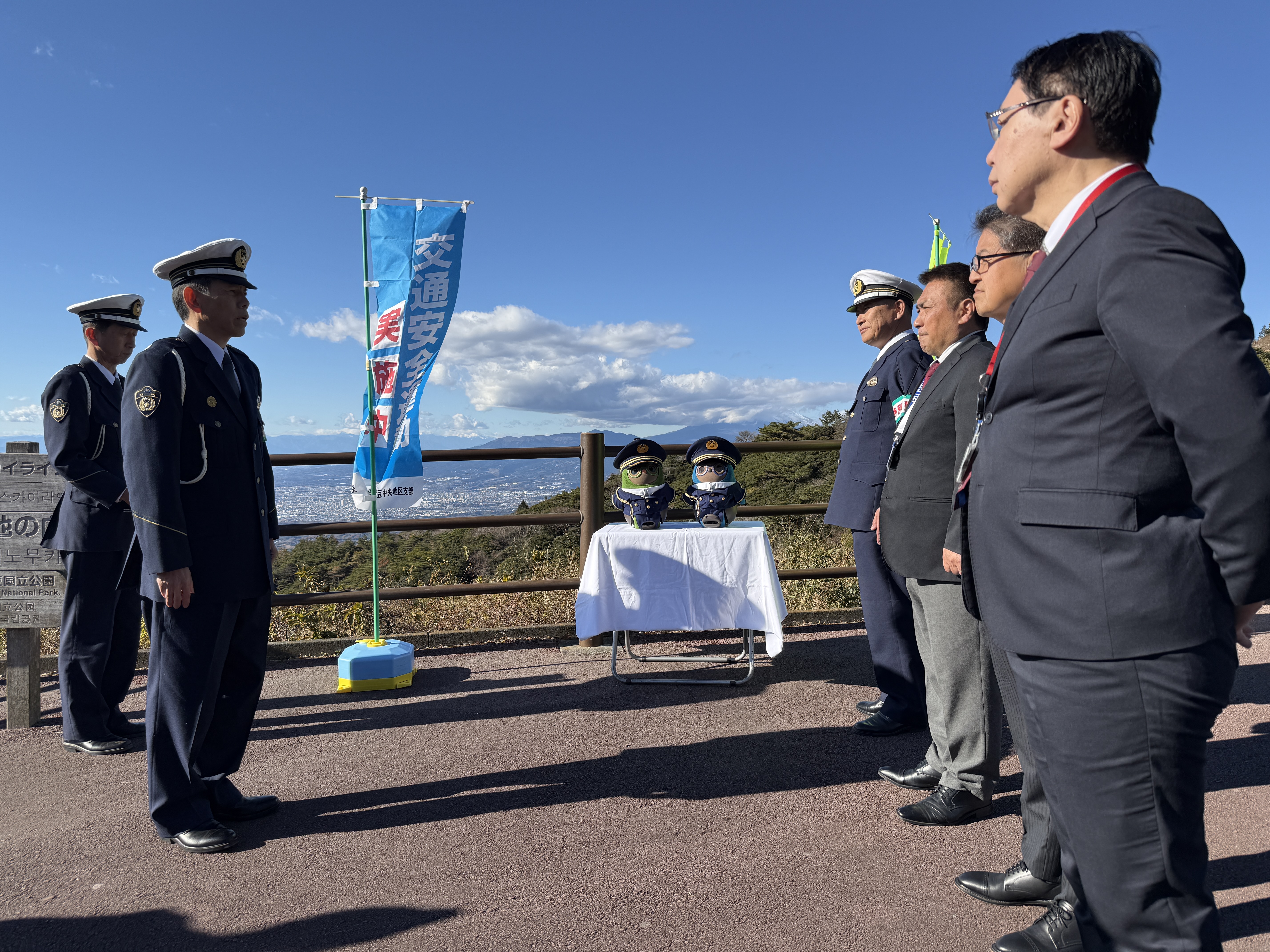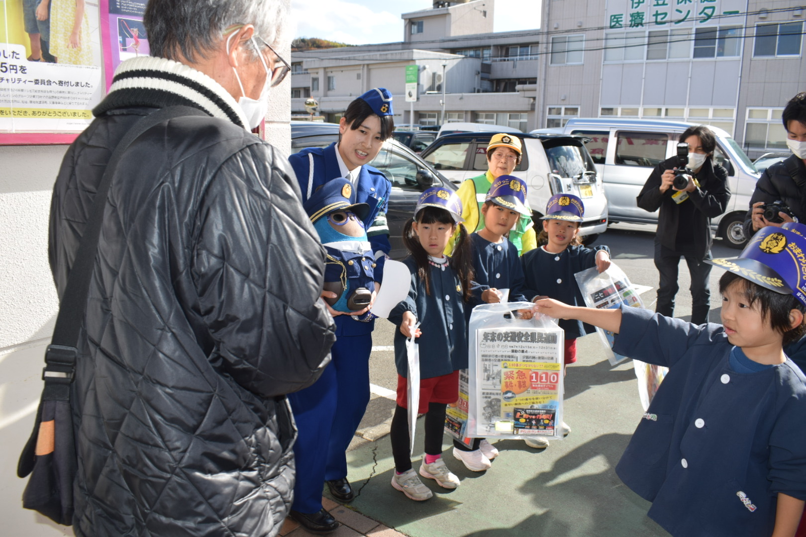 普段は世界遺産韮山反射炉で来訪者を迎えている「べりる」、市内の保育園やイベントで活躍する「かのん」ですが、2025年12月15日から始まった静岡県の交通安全県民運動の一環で、伊豆中央警察署のイベントに参加しました。