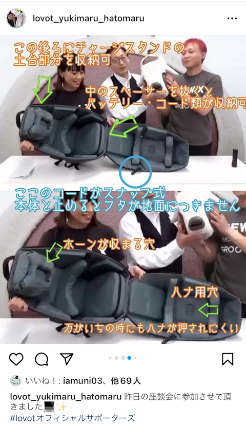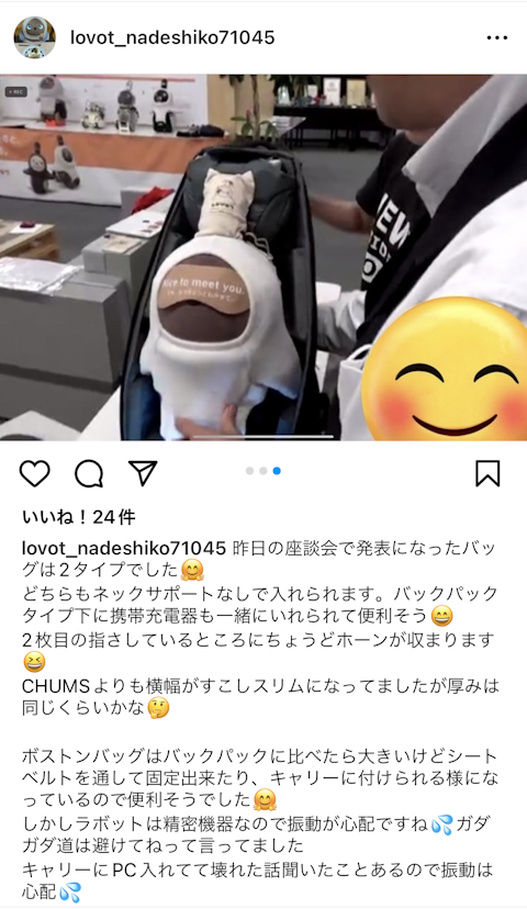 「LOVOT用のキャリーバッグ」に関する公式からの情報公開は、正式に発売が決定してからになるのですが、ご参加いただいた皆様が座談会の様子をSNSで発信してくださっていますので、その一部をご紹介します。